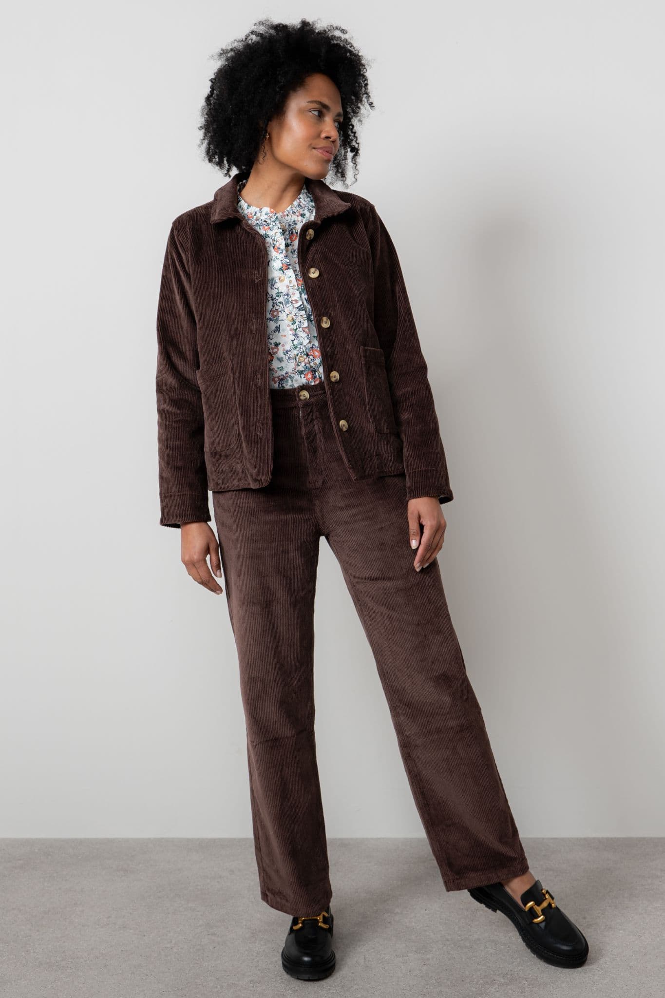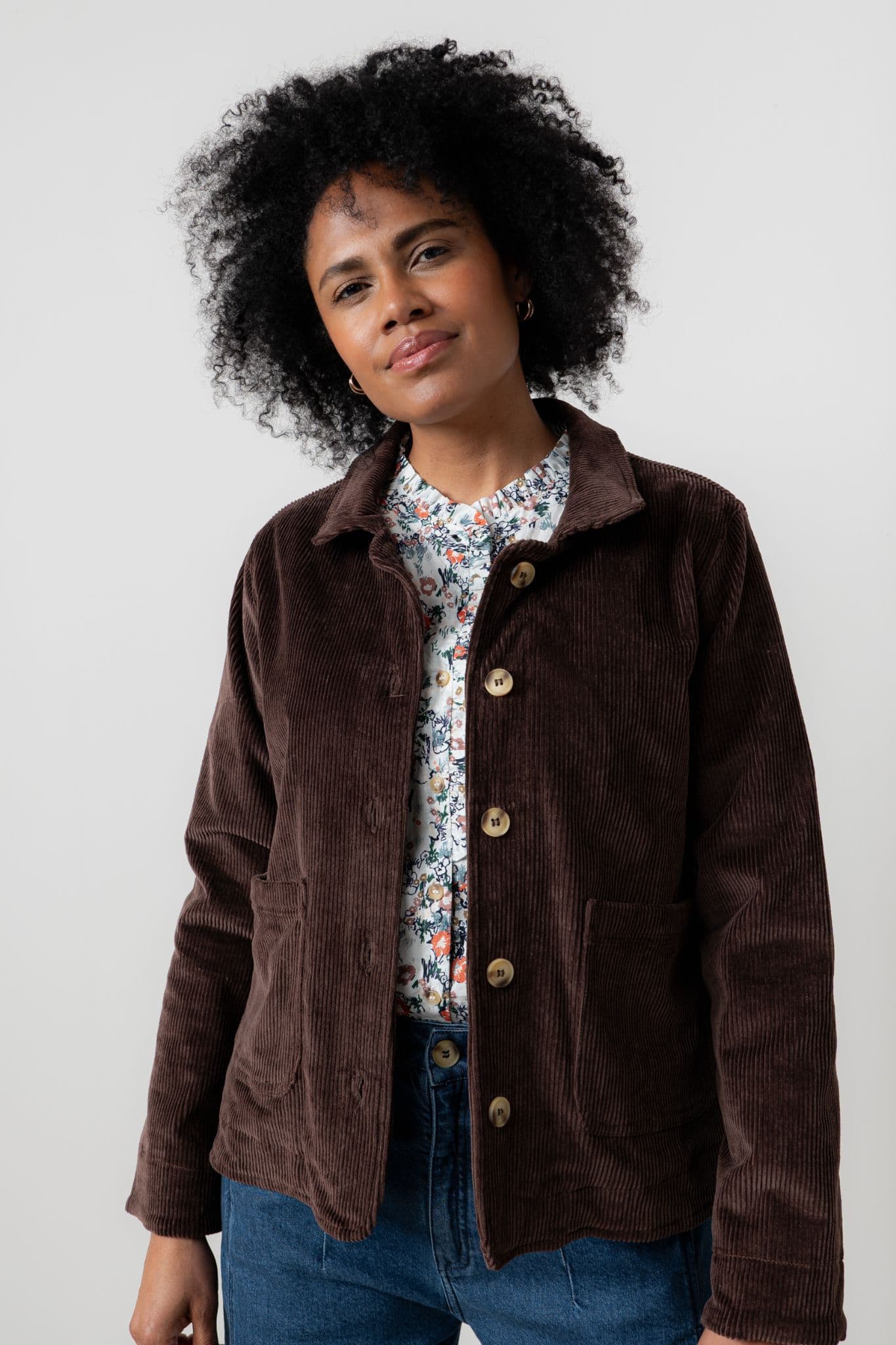 This cotton corduroy jacket from Lily & Me is a useful garment to team with your favourite jeans or chinos. The jacket has a 5 button fastening and 2 front pockets. It also features a neat collar and a small vent at the back.