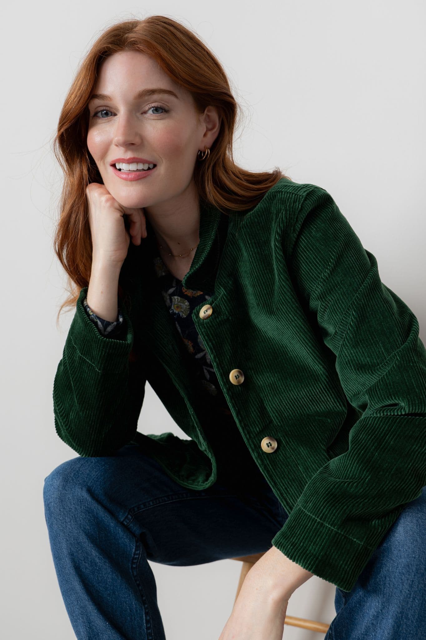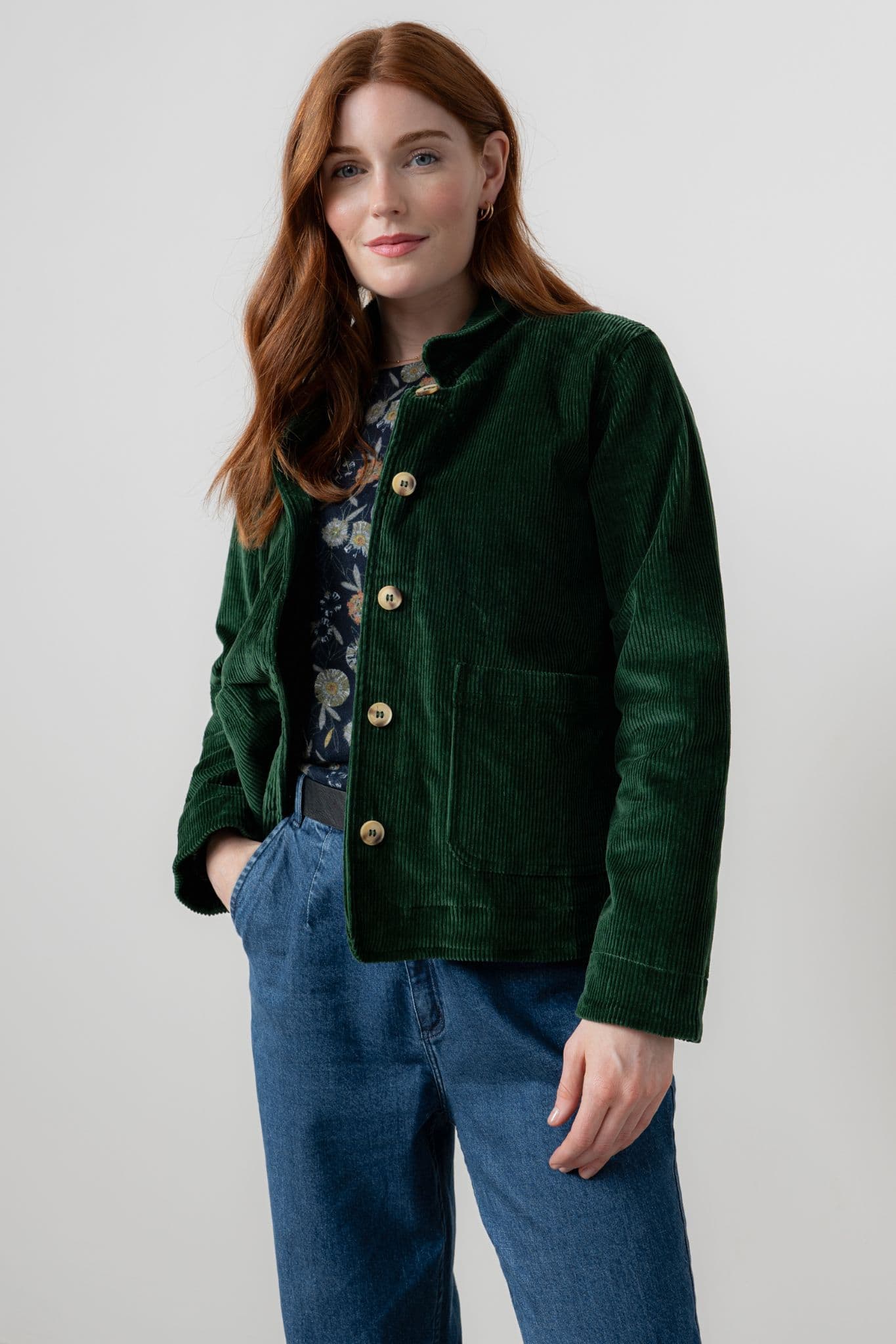 This cotton corduroy jacket from Lily & Me is a useful garment to team with your favourite jeans or chinos. The jacket has a 5 button fastening and 2 front pockets. It also features a neat collar and a small vent at the back.
