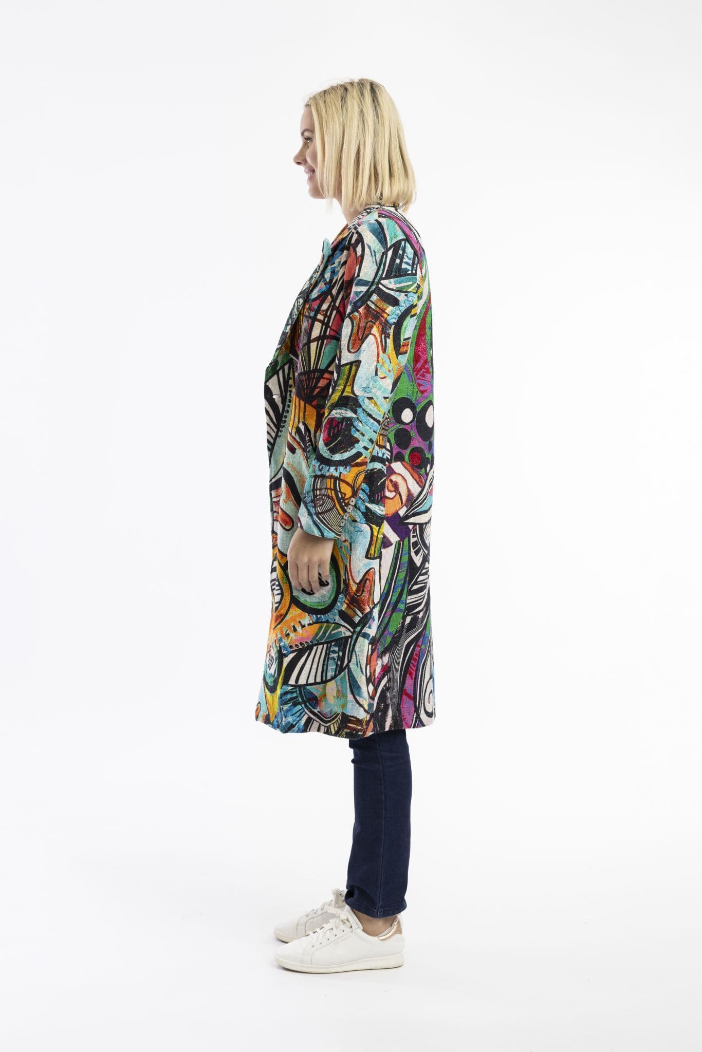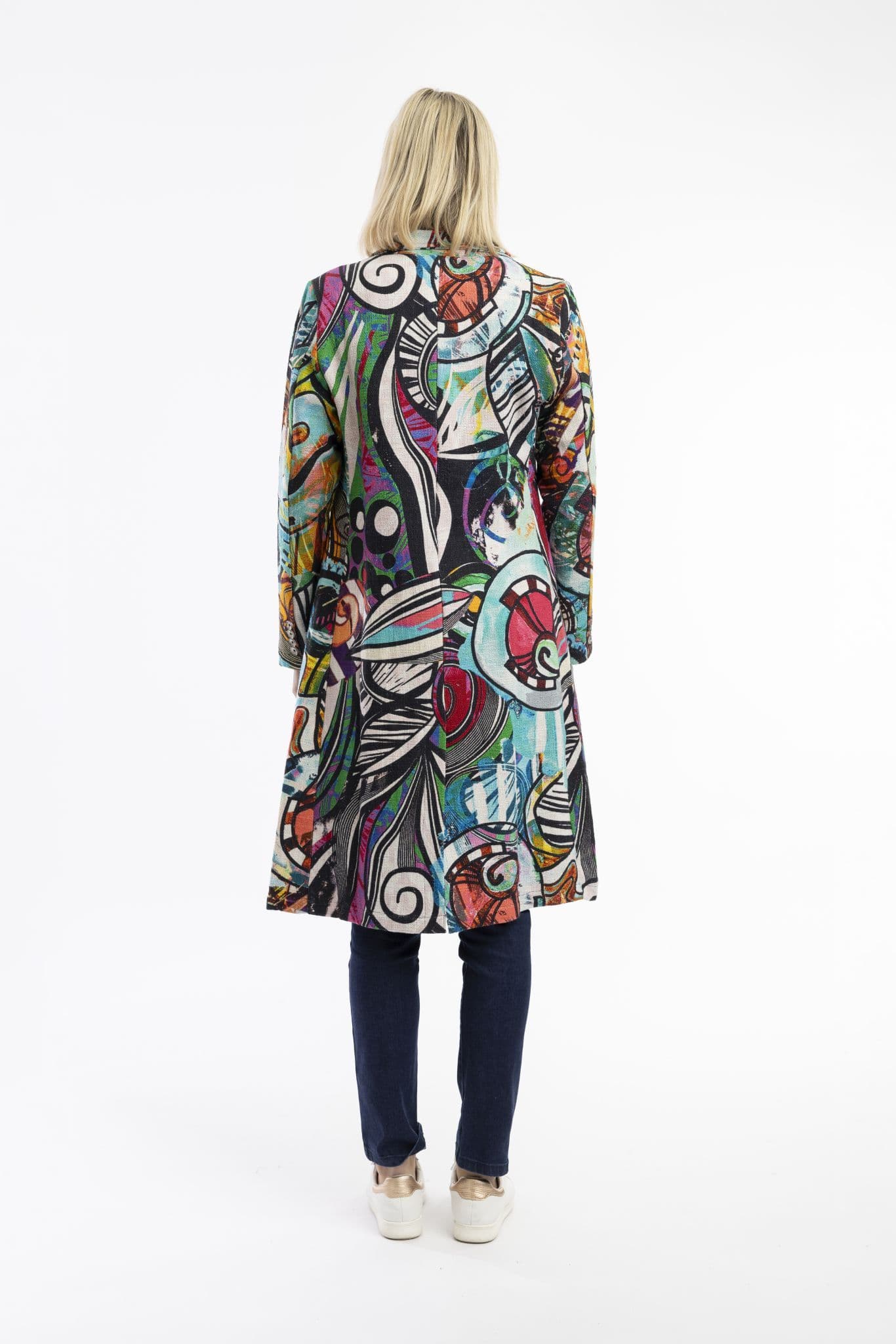 Everyone loves this coat. How could these colours not cheer up a Winters day? It has a deep 'V' neck with reveres, a 2 button fastening, 2 pockets and a vent at the back. It looks great with black trousers and black sweater. It is a true statement piece.