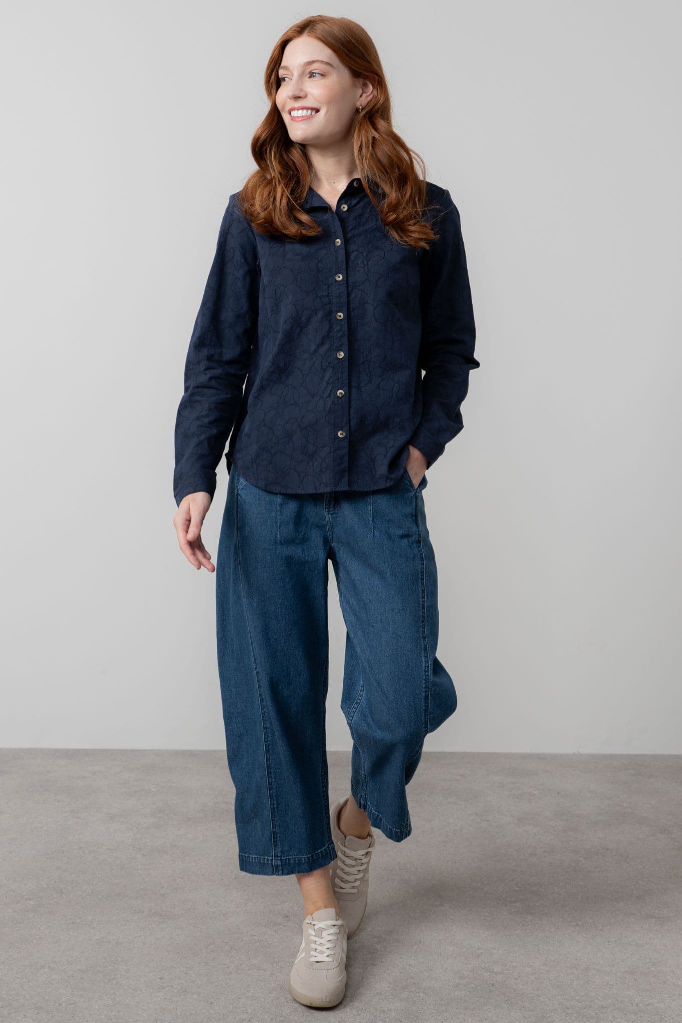 This is a lovely shirt to add to your wardrobe. The classic style from Lily & Me looks as good with a pair of jeans as it does with a smart skirt. The shirt has long sleeves which are finished with a neat cuff, is buttoned to the neck and features a neat collar. The hem is gently shaped and the blouse has a pleat at the back falling from the back yoke.
